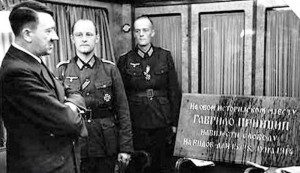 Fotografija Adolfa Hitlera dok zadovoljno posmatra spomen-ploču Gavrilu Principu, ratni trofej iz pregažene Jugoslavije, koji je dobio kao poklon za svoj 52. rođendan, objavljena u nedeljniku „Vreme“, snažnije od svih argumenata i rasprava vezala je ruke svima koji se zalažu za reviziju uzroka i povoda Prvog svetskog rata. Čak je i najglasniji među njima, istoričar Kristofer Klark, autor knjige „Mesečari – kako je Evropa krenula u rat 1914“, priznao da je ona najbolji vizuelni simbol veze između Prvog i Drugog svetskog rata.